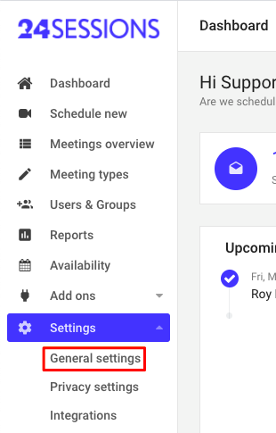 In this article, you can find out about the different types of settings in your 24sessions account. Both have different settings you can adjust.