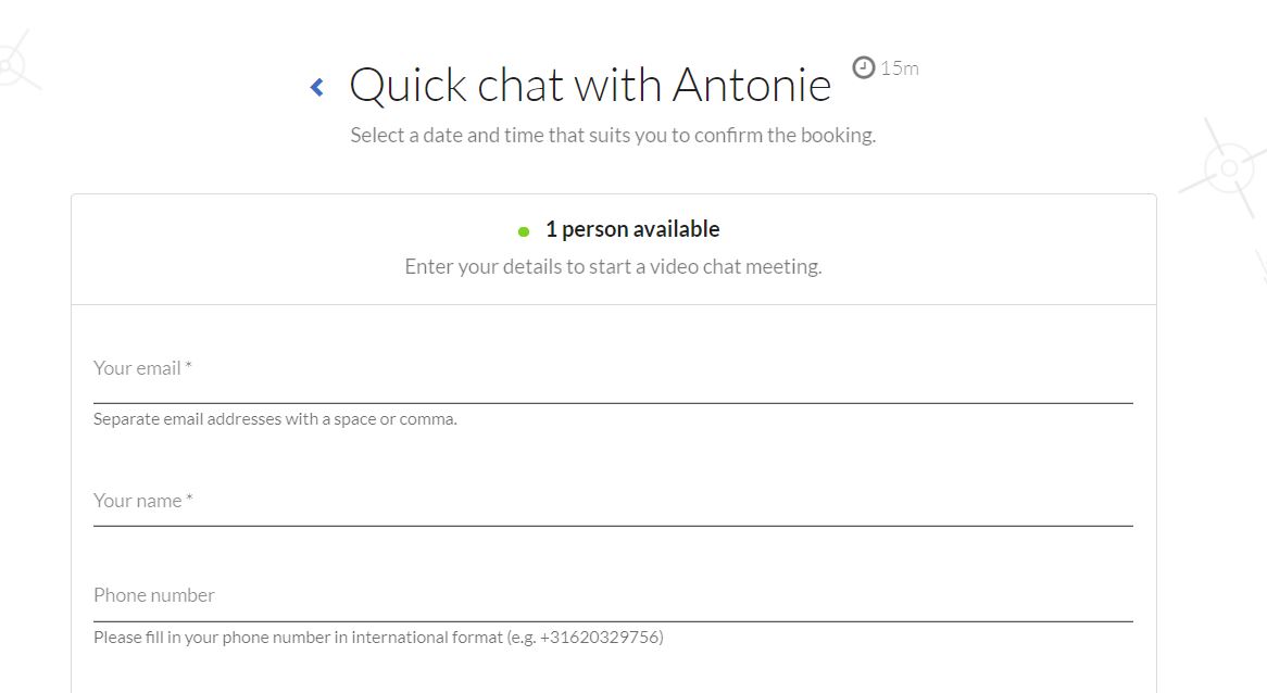 Now you are available for direct meetings with clients. You only need to lead them to the booking form or embed it on your website. This is how it looks:
