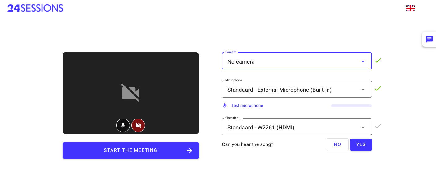 When entering without a microphone or speakers, use the [dial-in](https://docs.bird.com/24sessions/troubleshooting-articles/dial-in) option to establish an audio connection.