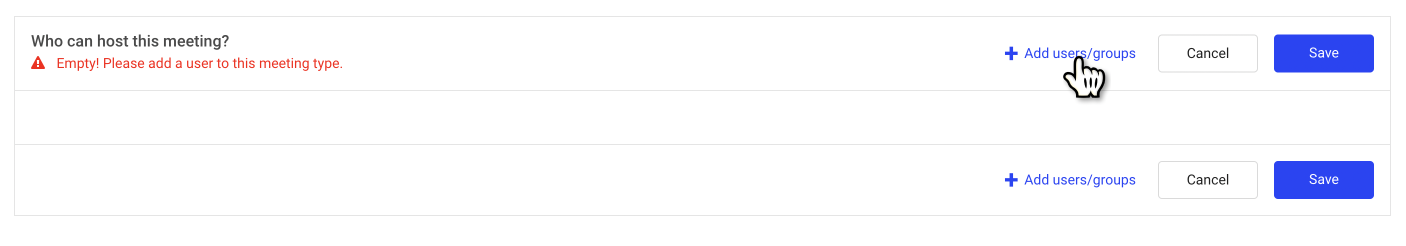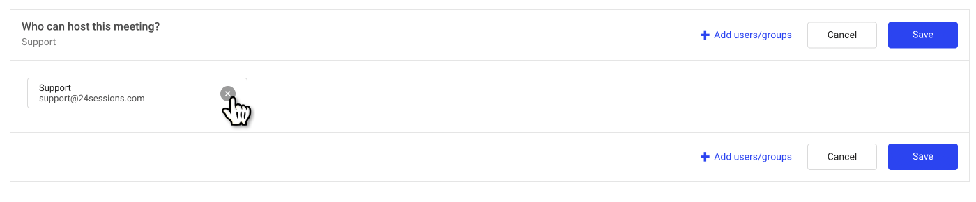 You can also remove meeting types from a group by going to the meeting type itself. Navigate to meeting types, then click on the meeting type that should be removed from the group. Then, open the setting Who can host this meeting? There you can simply click the x next to the group that should be removed. After that, simply click Save and the meeting type is now removed from the group!