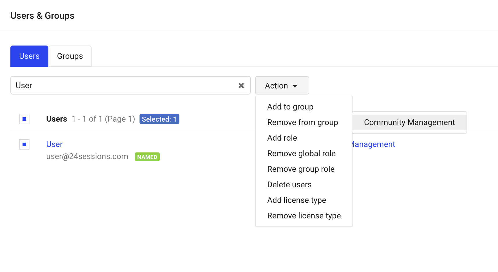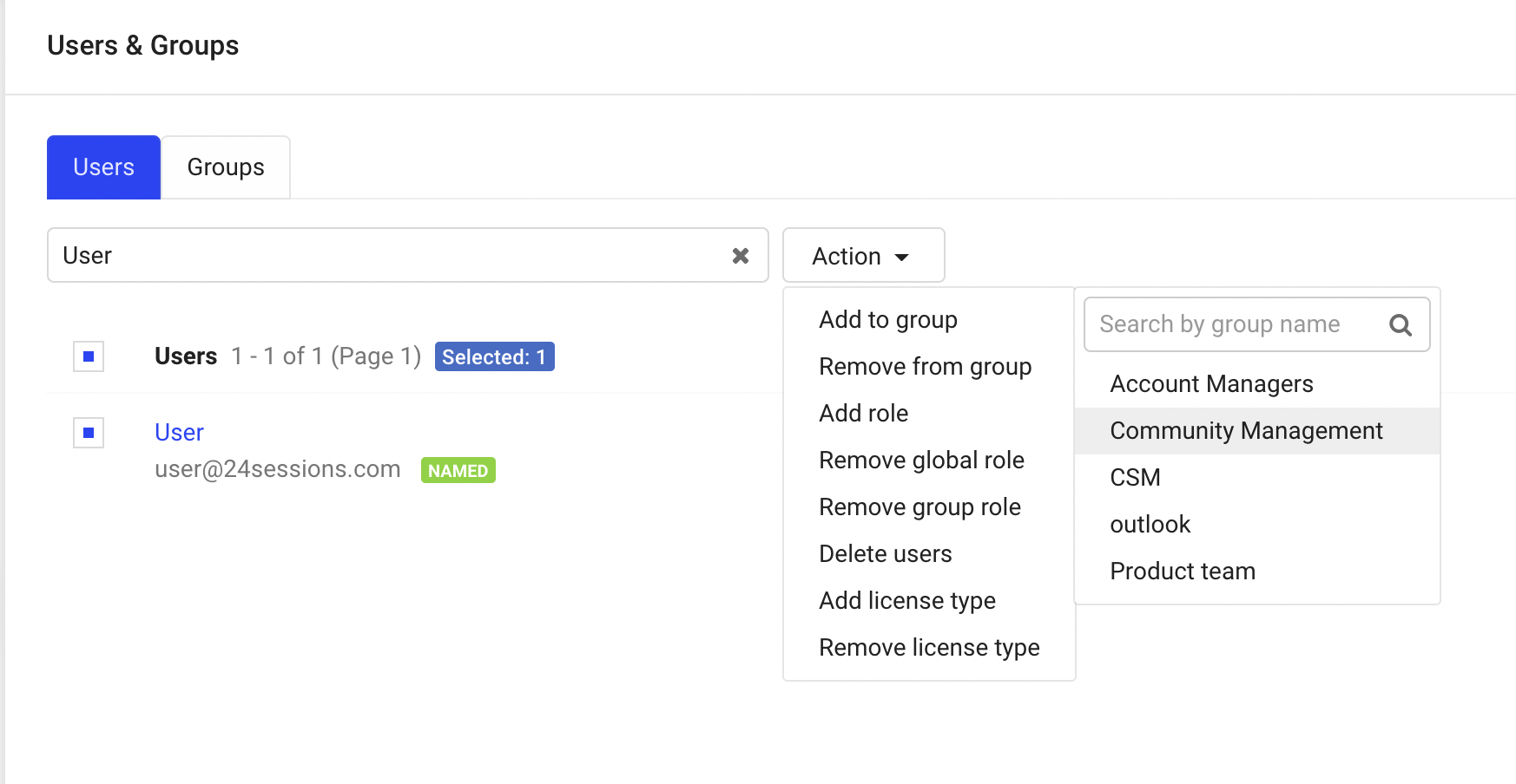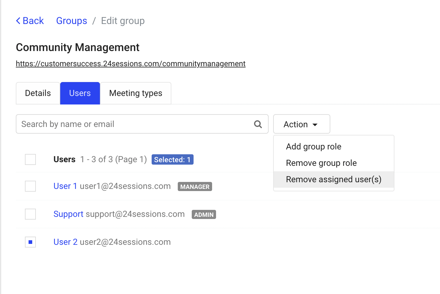 You can also remove users from a group by going to Users & Groups. There, simply select the users you want to remove from a group, go to the Action dropdown and hover over Remove from group, then select the group you want to remove the selected users from.