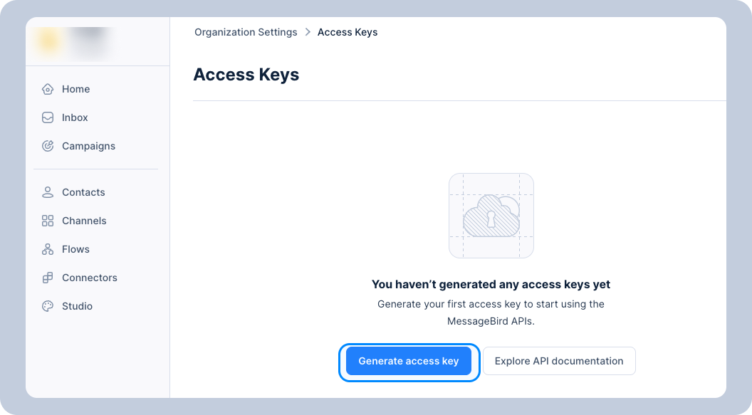 HTTP requests can be authorized using access keys. Access keys are attached to roles to limit the scope of what they provide access to. Access keys can be managed via <https://app.bird.com/settings/security/access-keys>