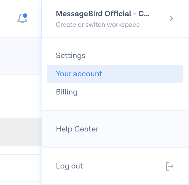 To view, edit and delete users, click on the Workspace name in the upper right corner and click on 'Your' in the drop-down menu.