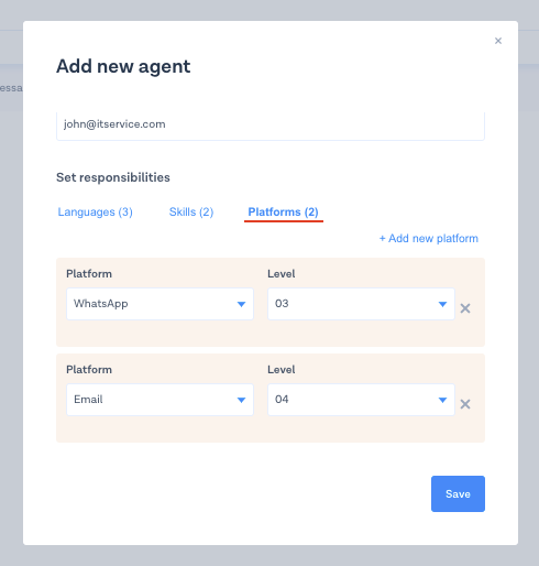 Repeat the steps above for all the agents in your team, for all their different skills. The skill levels are optional, but they will help you distinguish between agents that more or less skilled in certain areas. This will allow you to assign tickets to those agents who can handle them best.