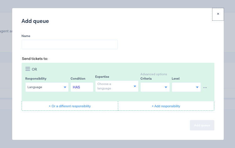 10\. Click on ‘Add queue’. You'll see the following modal: