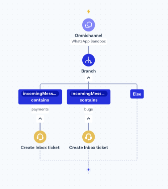 Then add a ‘Create Inbox Ticket’ step in each of those branches. It will look like this: