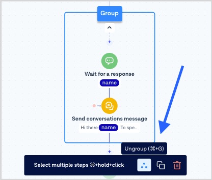 **Steps Grouping** is a feature enabling you to organize, move and re-use steps in your Flows in groups that make the most logic for your desired use case.