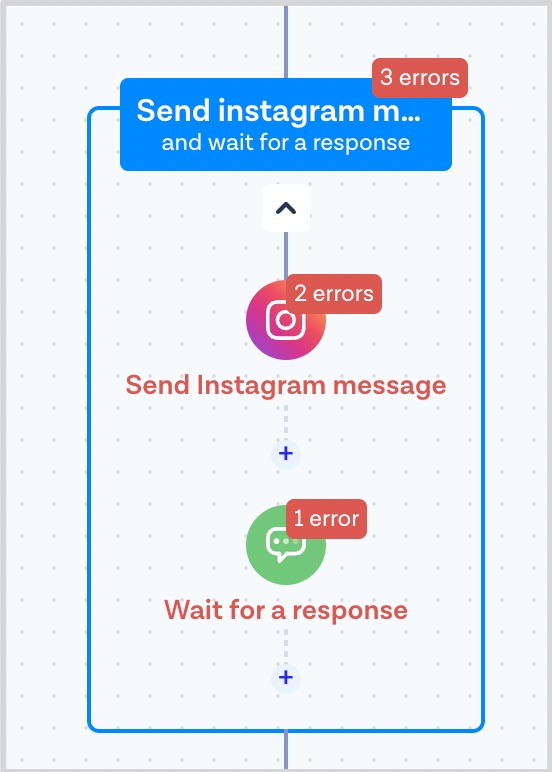 * In case anything is missing in the Steps configuration, you will be prompted to correct it: