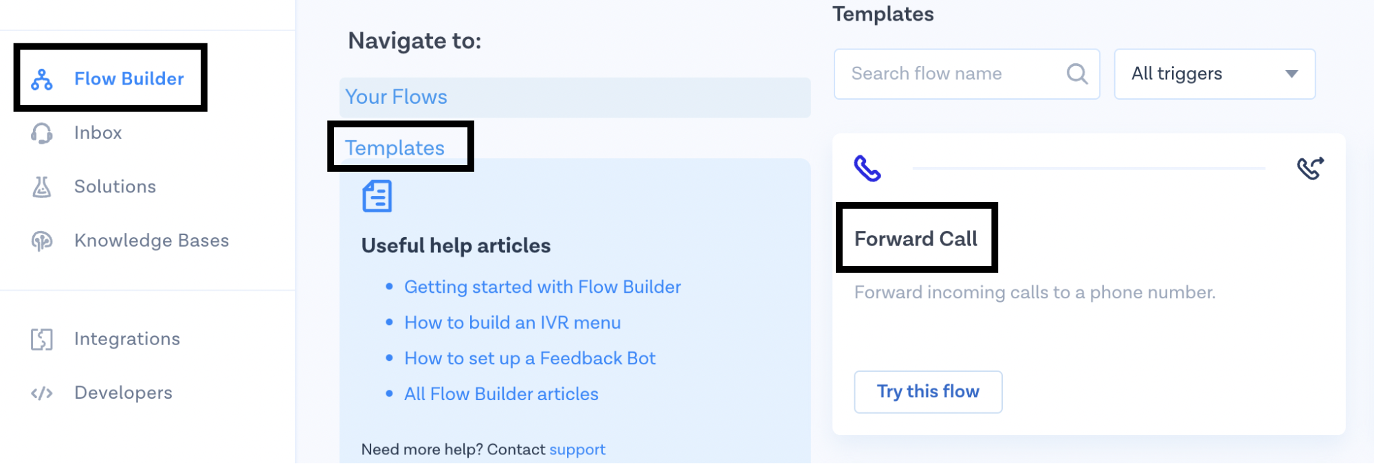1\. Go to **Flow Builder**, scroll down to **Templates**, and select the **Forward Call** template.