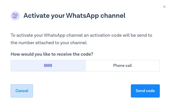 4\. Choose **Phone call** on the activation prompt, followed by **Send Code**. By doing this, the ‘Forward Call’ flow you have just created will be executed, and a verification code will be sent to your MessageBird WhatsApp number and forwarded to the setup number via a phone call. <br>