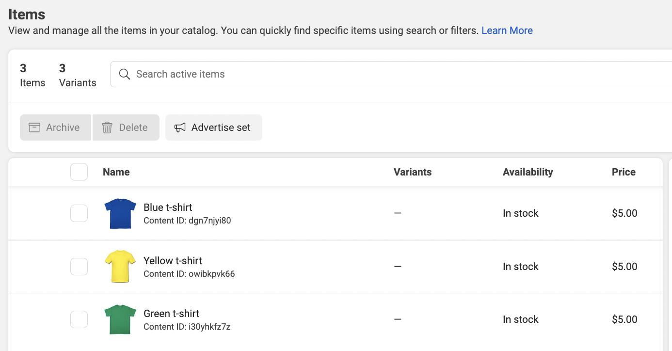 A short video guide (2:20 min) can be seen below, showcasing how to navigate through the Meta Commerce Manager and add product items: