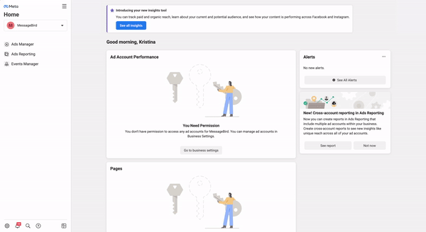 1. Log in to your [Meta Business Manager](https://business.facebook.com/home/accounts)