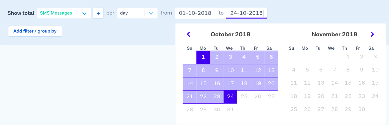 With [Insights](https://dashboard.messagebird.com/en/insights) you can create your own custom reports by filtering, grouping and visualizing exactly the data that you need. Doing so it’s really easy: