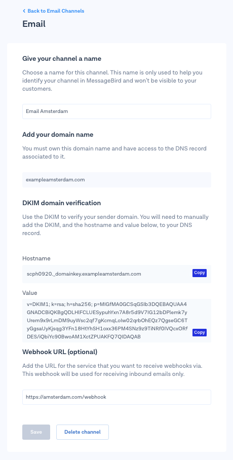 Name your channel, make sure it's easily recognizable for yourself and your team. Don't worry, this will only be used internally. For our example, the channel name is **Email Amsterdam**.