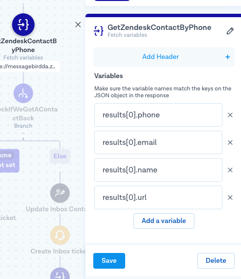 Since in Zendesk you can have multiple contacts with the same phone number, we must make a decision and choose which is the “best”match”. In this example we will simplify things and just pick the first result *(results\[0])*.\