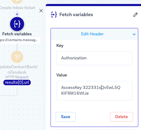 3\. **Publish** your flow in the top right corner of your screen, and you're good to go! 2. Add the Authorization header specific to Zendesk calls (see step 3).