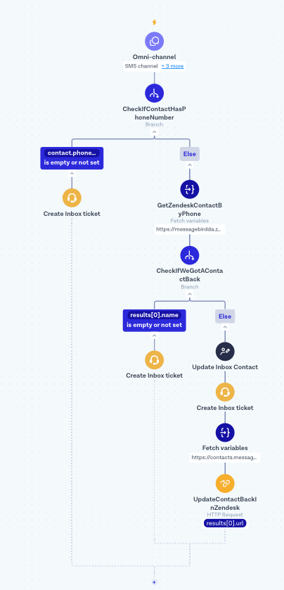 In this guide, you’ll learn how to integrate Inbox with Zendesk with [Flow Builder](https://dashboard.messagebird.com/en/flow-builder).&#x20;