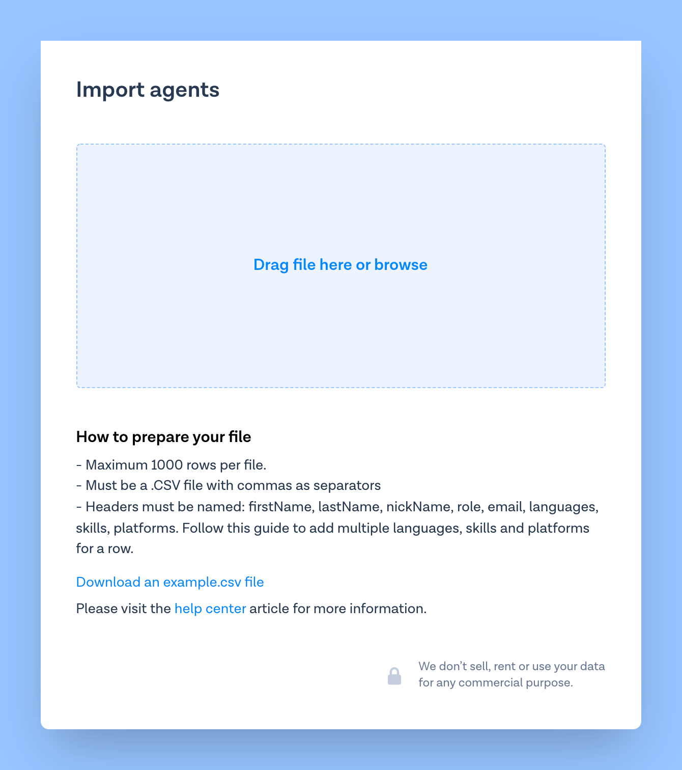 # Import agents to Inbox using CSV