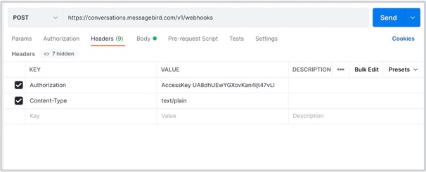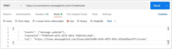 If you get 201 created as the response for the above call, it implies that the webhook is enabled successfully. If you receive 404 not found or any other error codes, reach out to the Support team or your MessageBird (TAM/CSM/TIM).