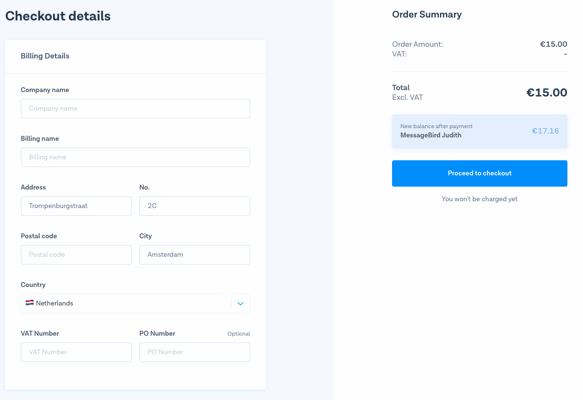 Click on 'Checkout details' and enter your billing details. Make sure that all fields are filled out with the correct information.&#x20;