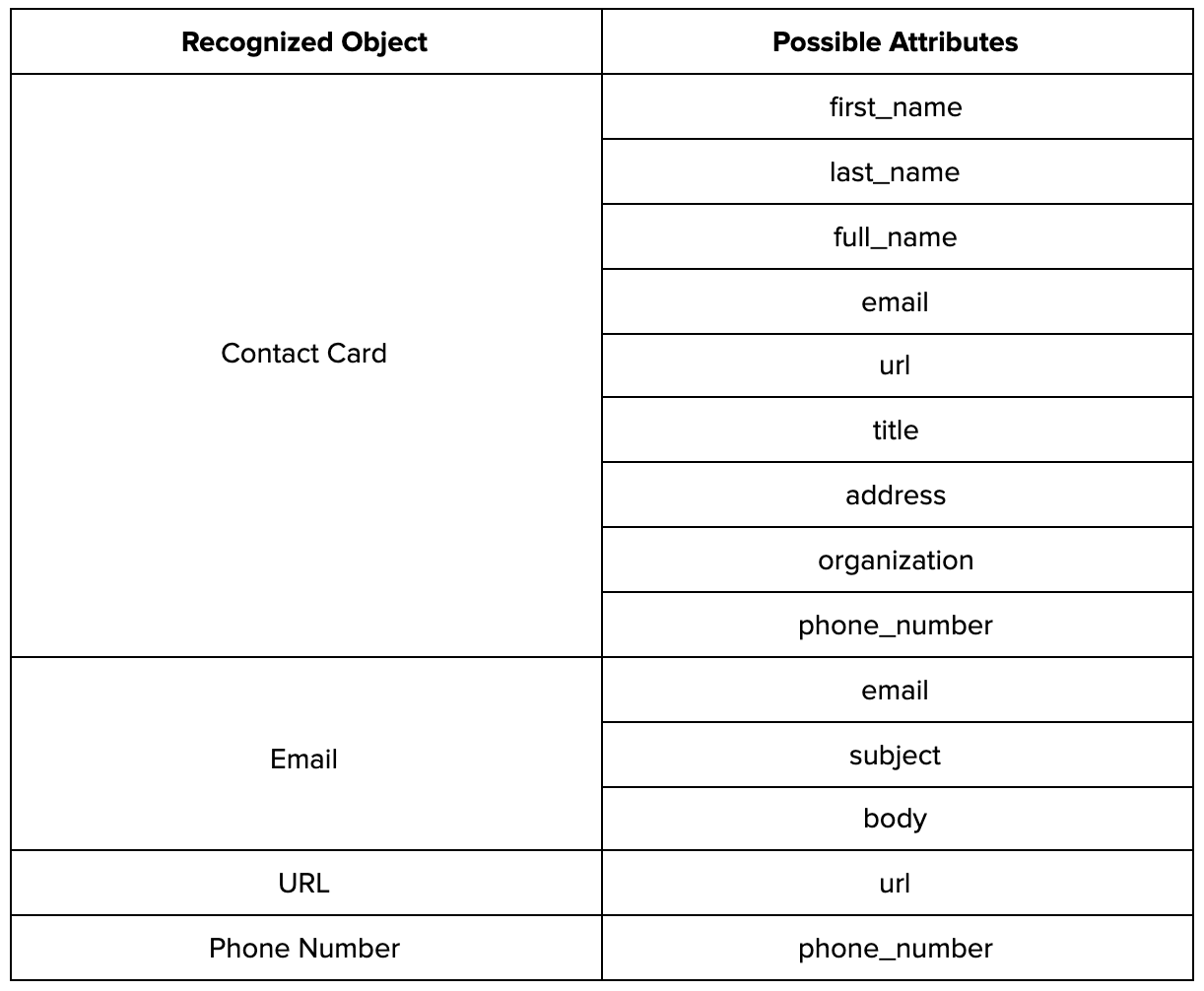 The payload of a QR Code is more than just a string of text or numbers. A QR code might carry a structured ‘object’. Currently, the QR code reader enables you to detect the following payload objects: