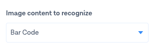 3. Next, choose the Bar Code option from the **image content to recognize** dropdown. Depending on your exact use case, you might want to pick **QR Code** as the content to recognize which allows for other types of payloads (see the Supported QR codes section above)