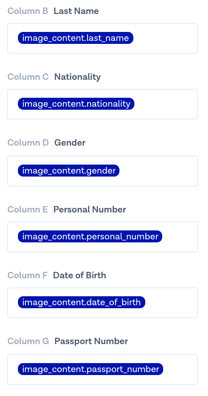 6. Starting with **Column A - First Name**, or drag and drop the **image\_content** variable into the field.