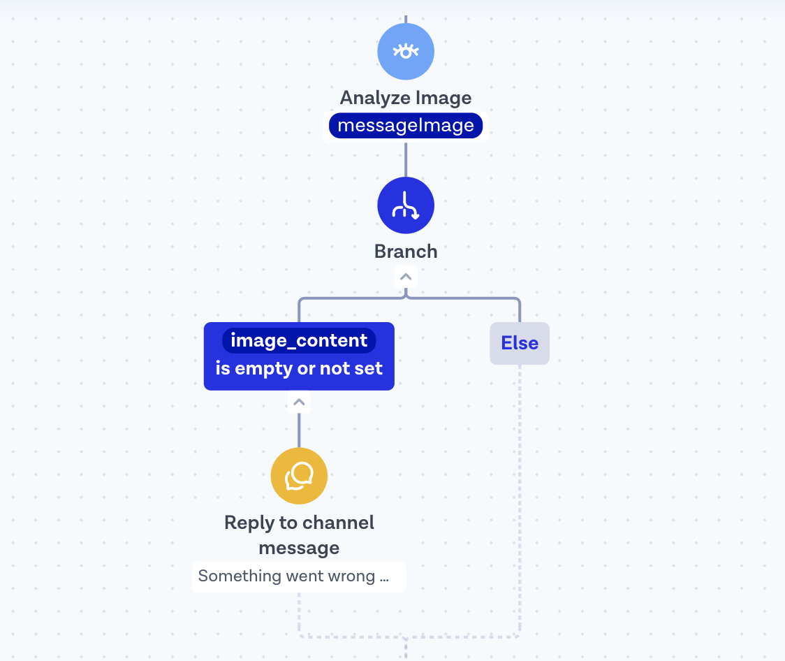 5. Add a **Reply to channel message** step below the image content branch that you just set up.<br>