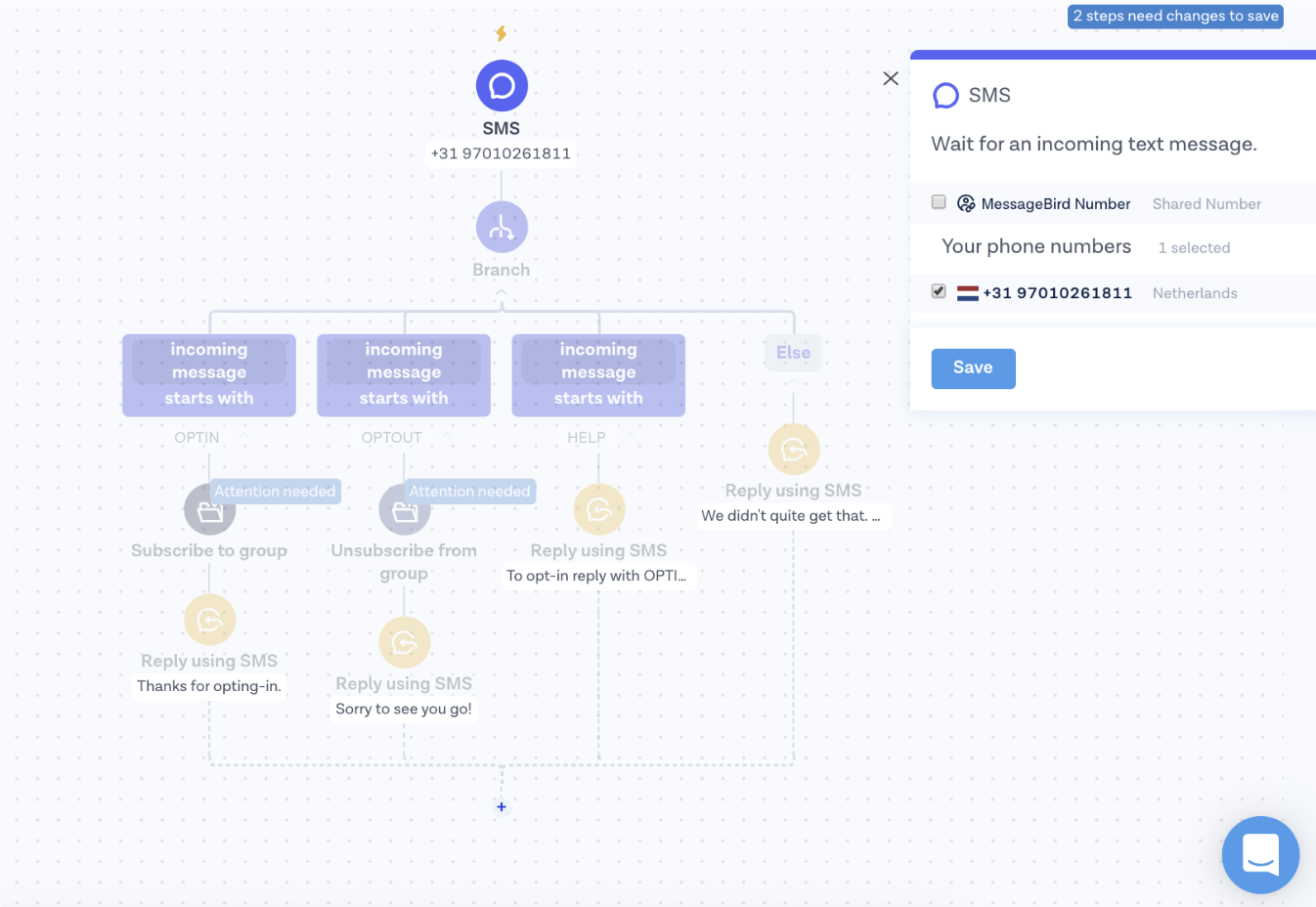 Using our Flow Builder, you can easily set up opt-in/opt-out automatic SMS subscriptions.