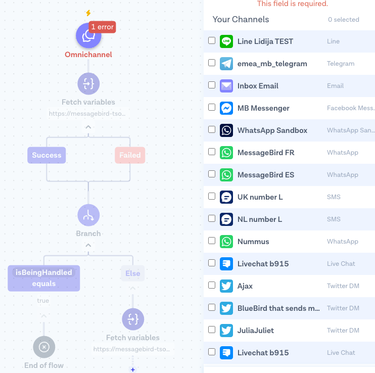 2. If you don’t use Messagebird Flow Builder, it should be configured like this:<br>