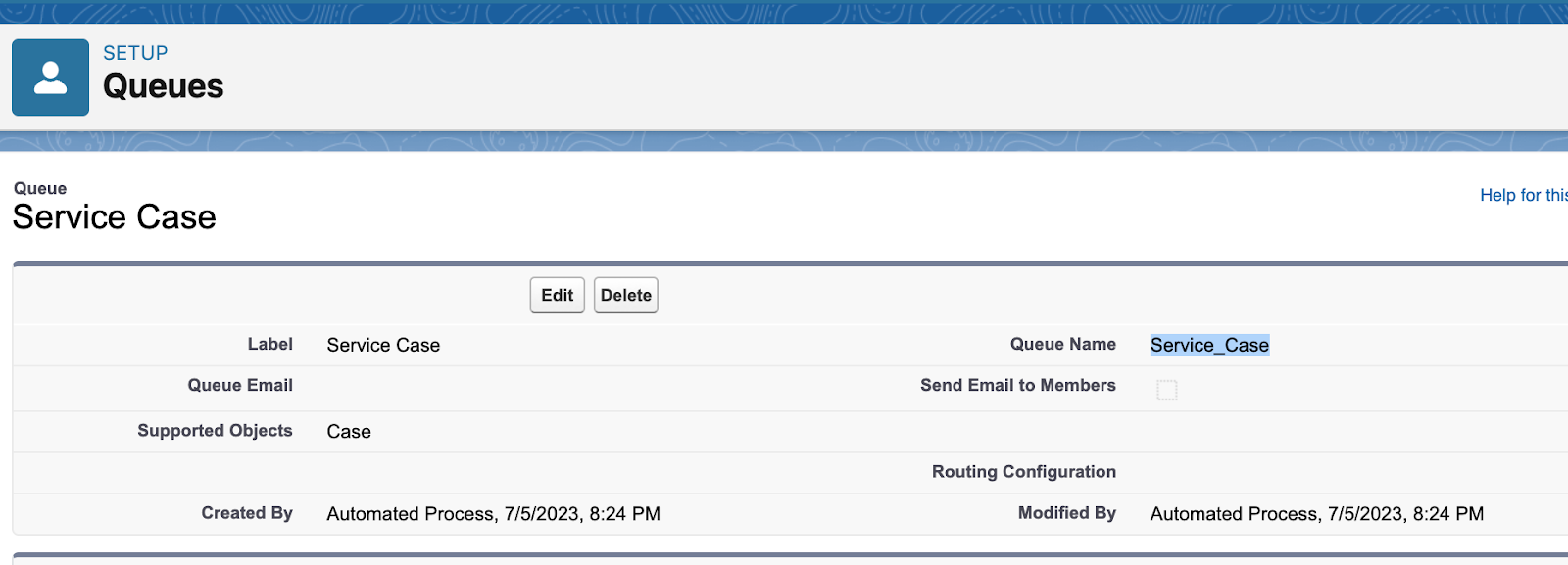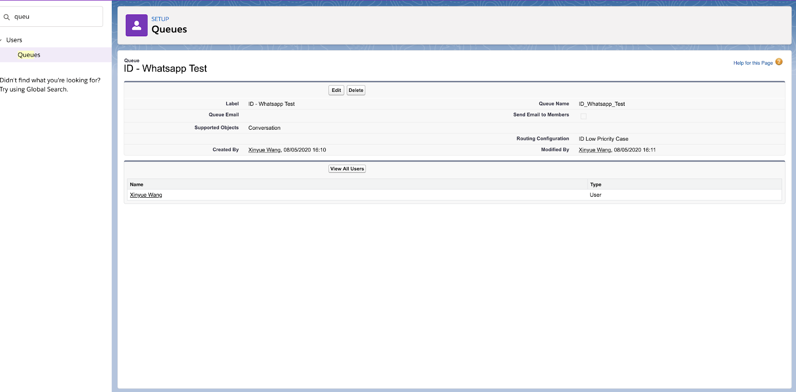 5. Create a new Queue in Users-> Queue, set the label and name and developer name, write down this developer name you will need it later, assign the routing configuration you created, and add Case to the supported objects. Add all the users you want on your queue, they should have access to the Salesforce Messagebird Package, and then save.