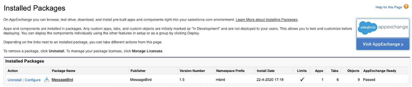 2. [Configure the MessageBird for Salesforce app](#h_01F4SB331TCRPNGS57P90HH99Z)