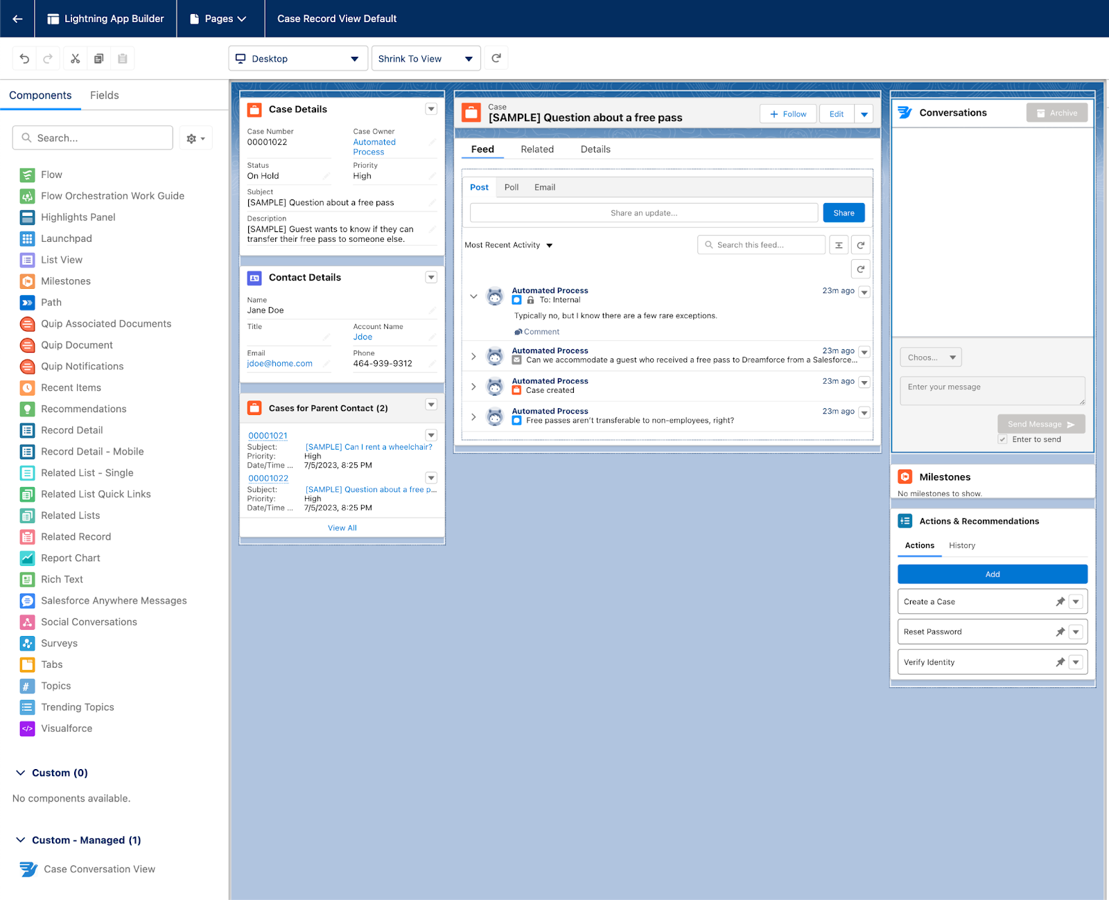Finally, go to your Cases Layout and add the **Case Conversation View** component.<br>
