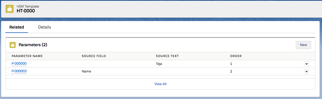 5. For each HSM Template, go to the related list and enter the **Parameter Records** to add them in the template message.