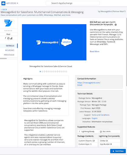 ## Step one: Get the MessageBird for Salesforce app <a href="#h_01f4sb1nr07mhsta38r6wepfsy" id="h_01f4sb1nr07mhsta38r6wepfsy"></a>
