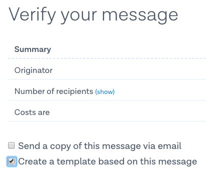 MessageBird allows you to store SMS templates for future use, which can be useful if you send out the same or similar texts often. Using templates can also help you avoid typos and increase your message consistency and recognition with your recipients. There are two ways of creating a template: