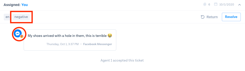 Use sentiment analysis to detect your customer’s mood from their initial message, and display this information on the ticket in the form of an emoji.