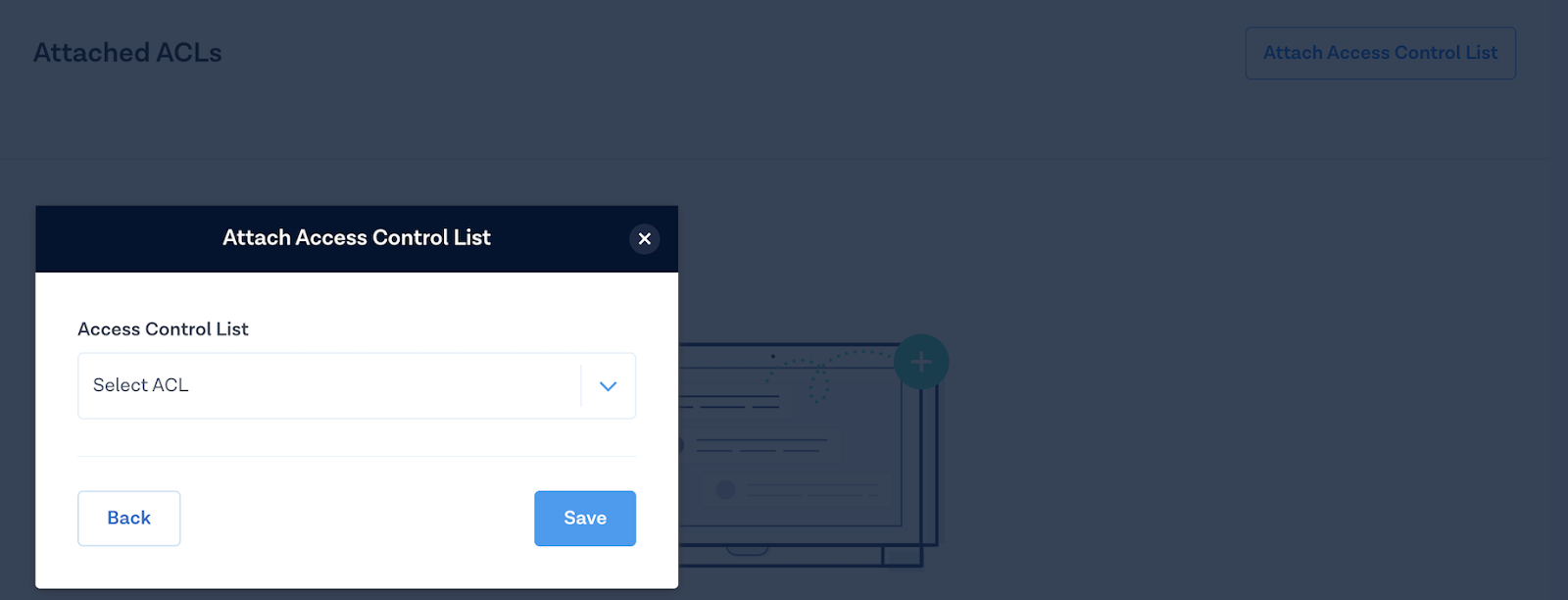 7. Now you’ve created a subdomain, you can attach an ACL. Under **Attached ACLs**, click on **Attached Access Control List**. A pop-up will appear.\ <br>