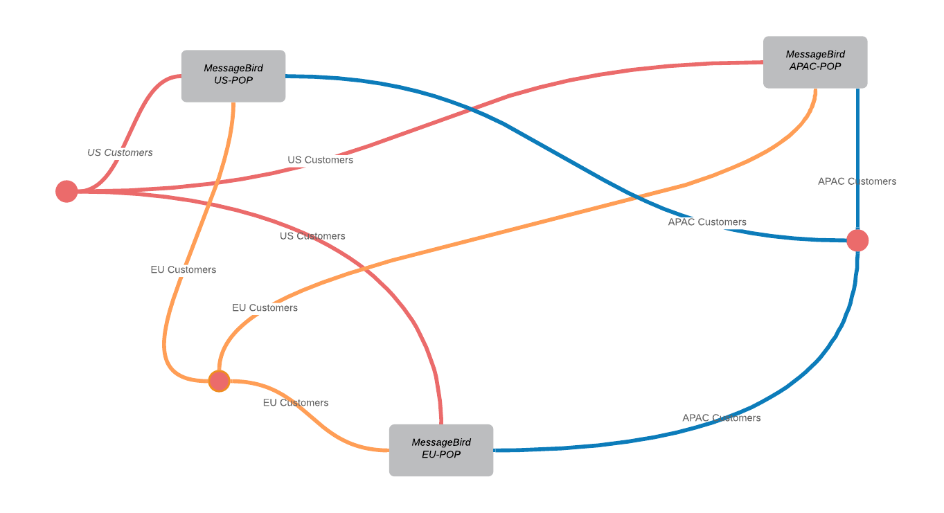 By using the default configuration of *\[your\_domain].sip.messagebird.com* your traffic will be redirected to our European servers or, in the case of a local failure, to one of the 3 available regions. To be able to keep your traffic bound to one region and avoid an additional hop through our European servers, you can configure the domain name as follows: