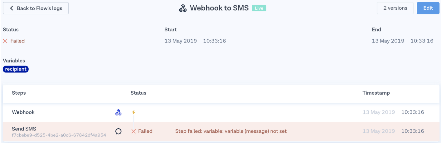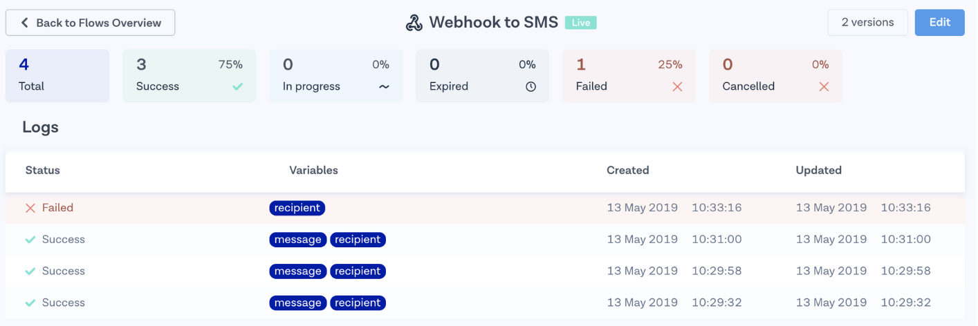 If you are still facing issues with the flow not working, please reach out to our Support team via [this page](https://www.messagebird.com/contact) with the following information: