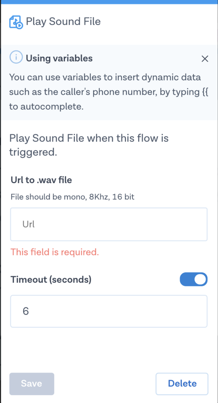 Do note you will have to store the WAV file on a public domain, otherwise we cannot access the file and play it.