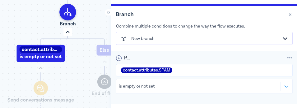 * The Flow will now check if the contact has a custom attribute of SPAM