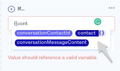 * * Set the *custom variable* to *contact.attributes.SPAM* by using two curly brackets on your keyboard **{{** to initiate the variable loading