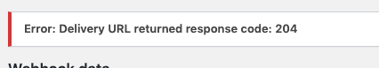 5. Click **Save webhook** to save your configuration. A 204 error will appear, but you can ignore this message as your webhook will still have been saved and configured correctly\ <br>