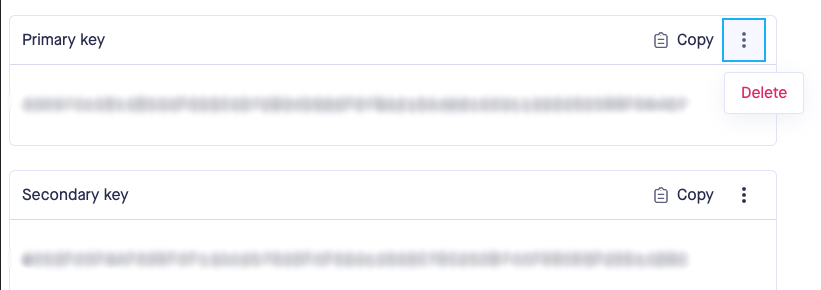 If you need to delete old keys then you can do so by clicking the **vertical three-dot menu > delete**