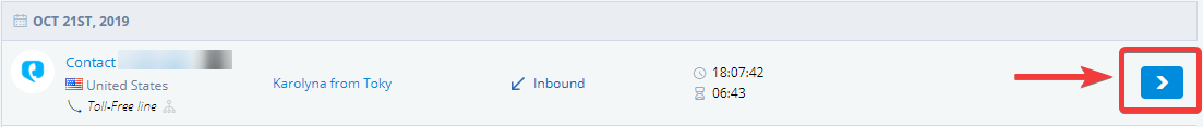**3.** Click on the **blue button** located in the right of the desired phone call to display the **call details** window