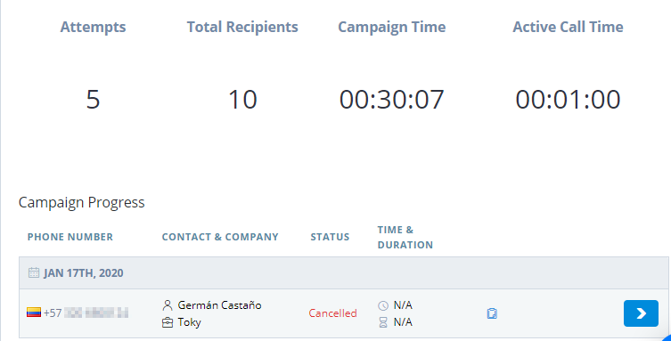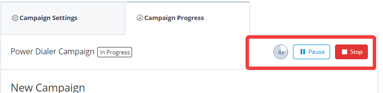 * After starting a campaign, you can pause it or stop it any time. You can also see a timer with the wrap up defined.