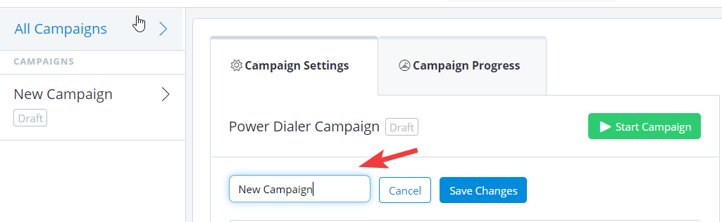 * To run the campaign click on the **Campaign Progress** tab and next click on the **Start Campaign** button.