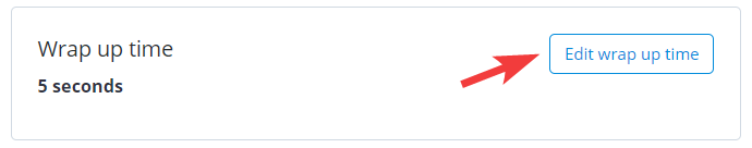* Set the wrap up time, this is the amount of seconds that the power dialer will wait between each call. You can use this time to do your after call work, or prepare the next call. If you want to change the suggested time click on **Edit wrap up time.**