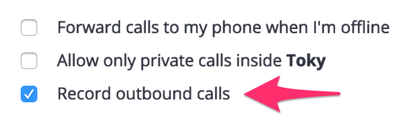 <figure><img src="https://766977813-files.gitbook.io/~/files/v0/b/gitbook-x-prod.appspot.com/o/spaces%2FMgClsjsTSlUrSU2WhwDe%2Fuploads%2Fgit-blob-945557d1df5b0a2eb5dcc76193db3398d6560caf%2Ftoky-enable-disable-call-recording.png?alt=media" alt=""><figcaption></figcaption></figure>